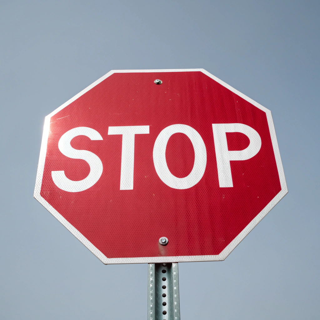 Stop – Achteckiges rotes Schild mit weißer Schrift